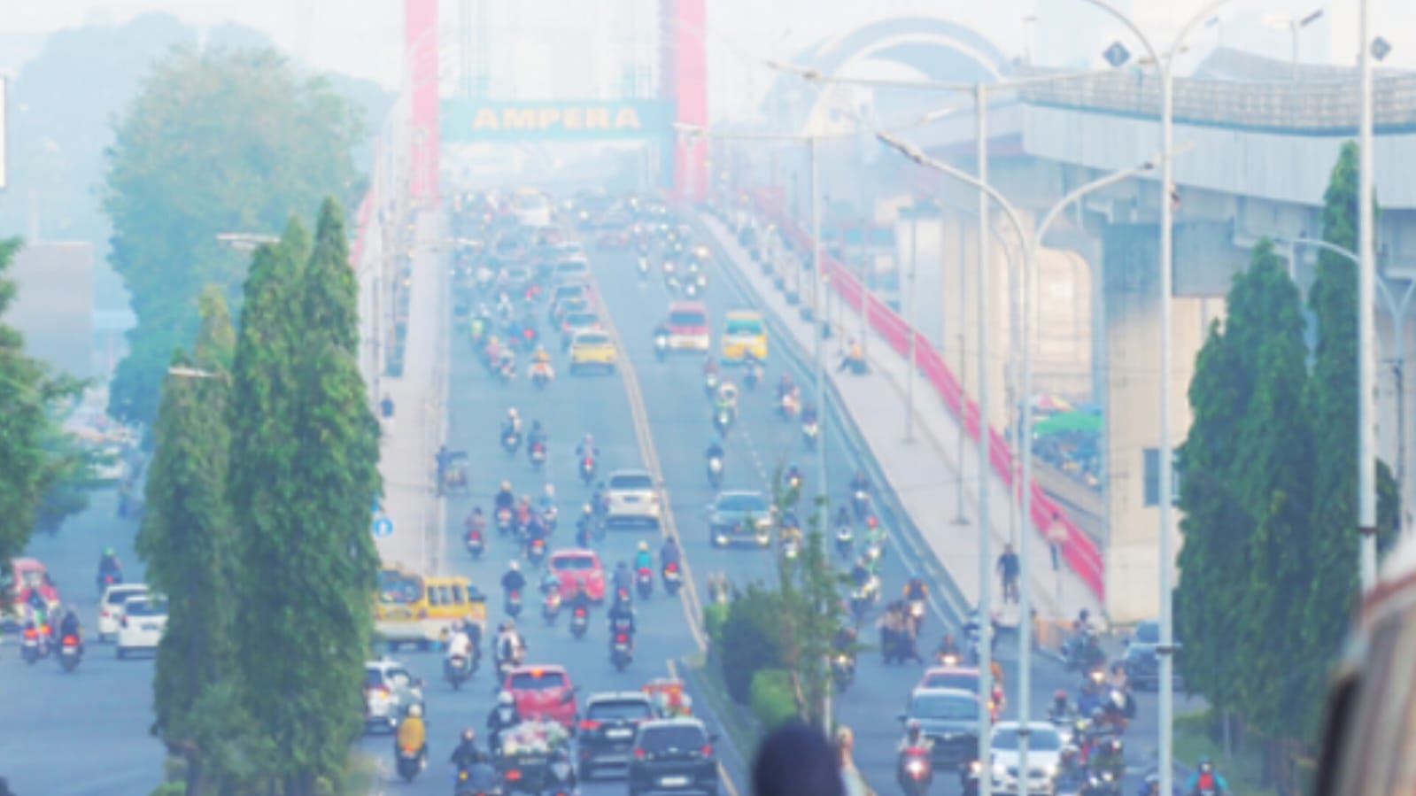 Ikon Kota Palembang, Jembatan Ampera, bahkan nyaris tak tampak karena kabut asap yang kian menebal. Berdasarkan data pemantauan Indeks Kualitas Udara (IQAir), tercatat angka 110 pada Sabtu pagi—masuk kategori tidak sehat.