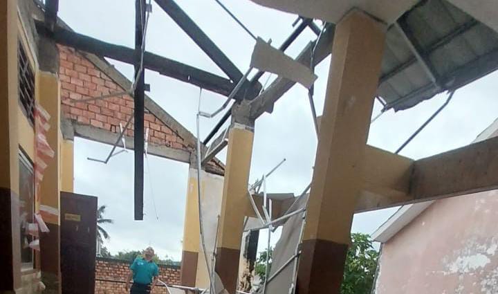 Bagian atap aula dan sejumlah ruang kelas roboh akibat hempasan angin, beruntung tidak ada aktivitas di sekolah saat kejadian sehingga tidak menimbulkan korban jiwa.