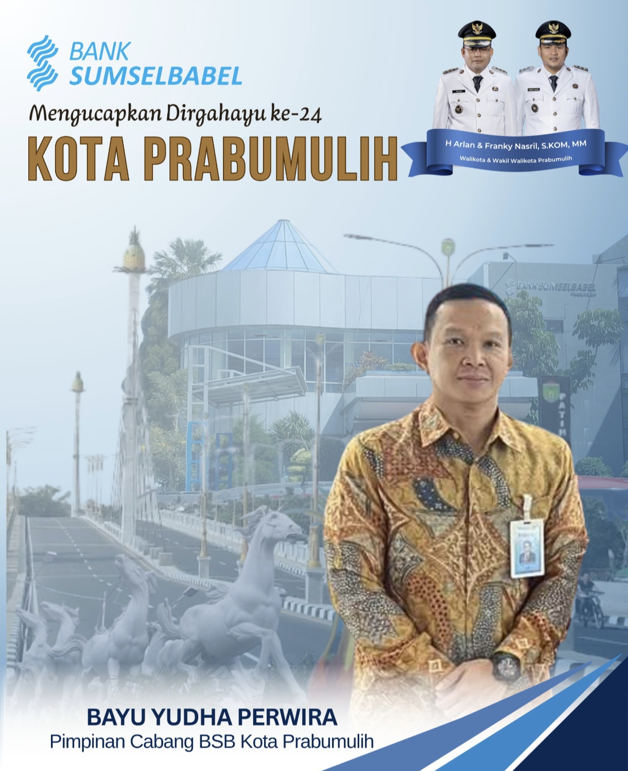 PRABUMULIH, KORANPRABUMULIHPOS.COM - Pimpinan Cabang BSB Kota Prabumulih, Bayu Yudha Perwira Mengucapkan Selamat HUT Kota Prabumulih ke 24.