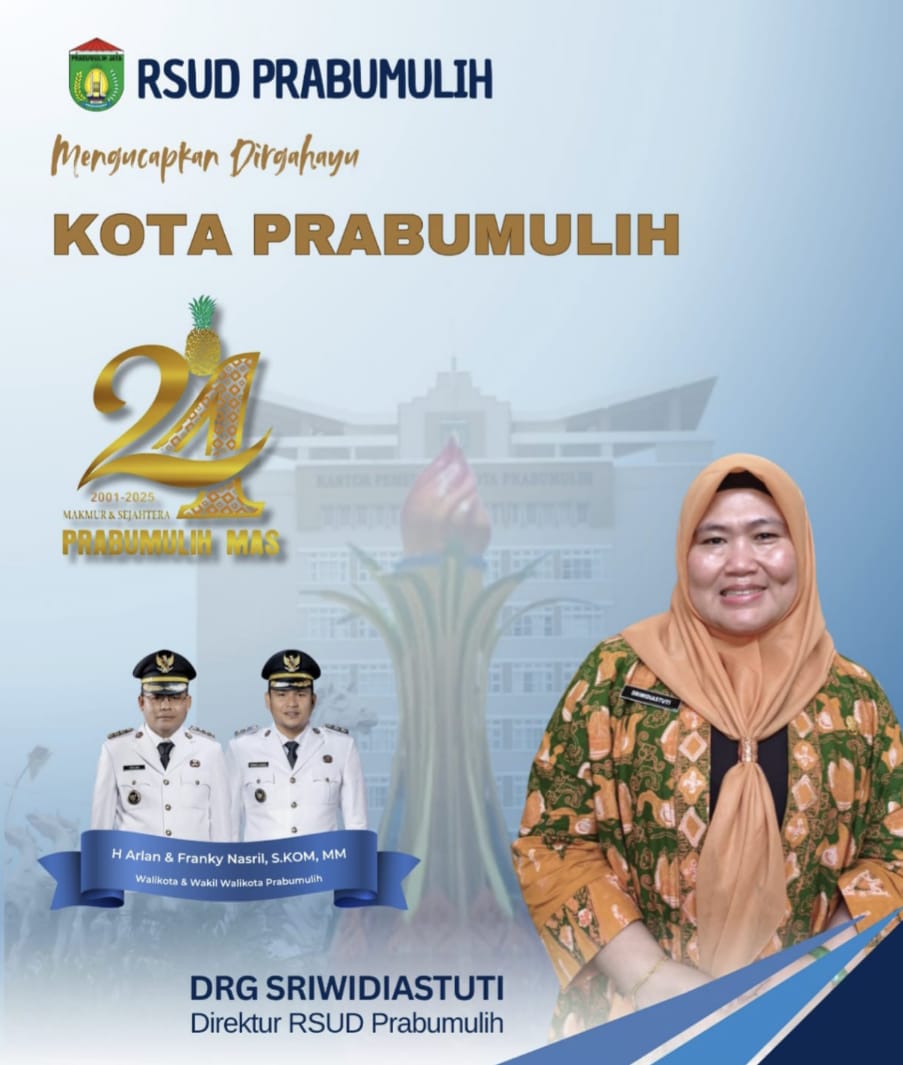 PRABUMULIH, KORANPRABUMULIHPOS.COM - Direktur RSUD Prabumulih DRG, Sriwidiastuti Mengucapkan Selamat HUT Kota Prabumulih ke 24.