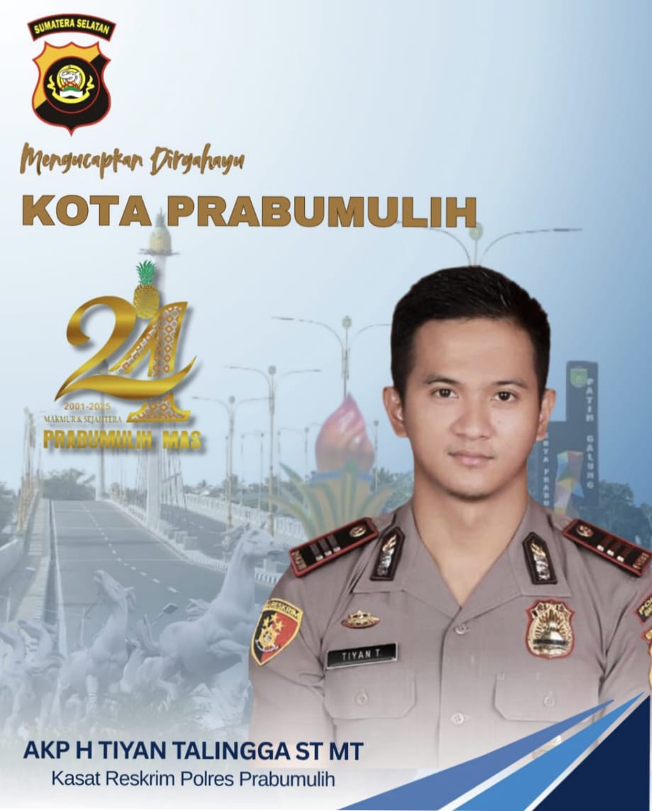 Kasat Reskrim Polres Prabumulih, AKP H Tiyan Talingga ST MT Mengucapkan Selamat HUT Kota Prabumulih ke-24