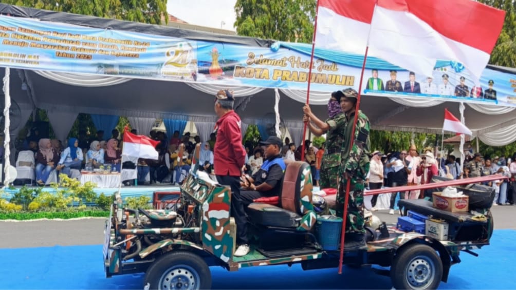 YPN Abadi Prabumulih Tampil Gagah ala TNI di Karnaval HUT Kota Prabumulih