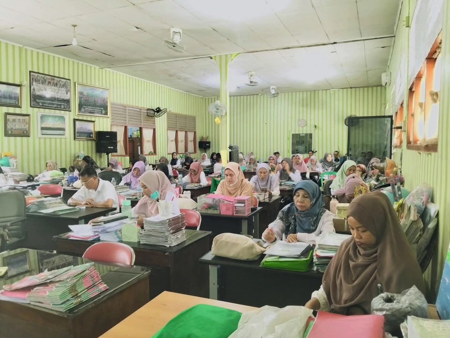 Para guru MTS N 1 Prabumulih, mengikuti rapat pembahasan mengenai asesmen akhir semester. Foto: Dok MTs N 1 Prabumulih--