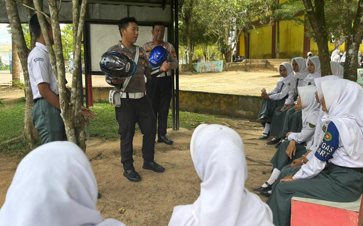 Melalui program Police Go to School, petugas kali ini menyasar para pelajar SMAN 07 Prabumulih untuk memberikan edukasi terkait keselamatan berkendara.